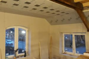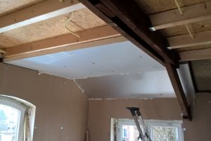 Nieuwe vliering aangebracht voorzien van 100 mm pir isolatie afgewerkt met een gipsplaatplafond.