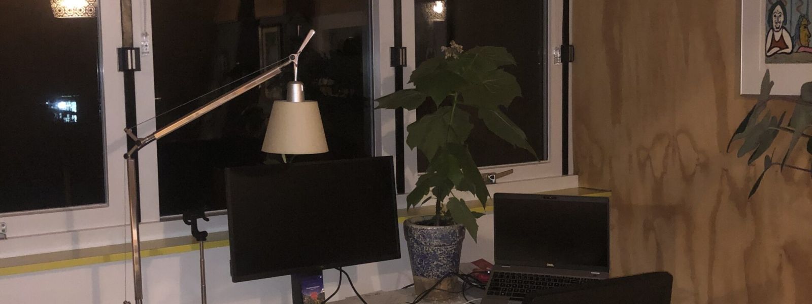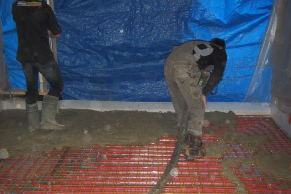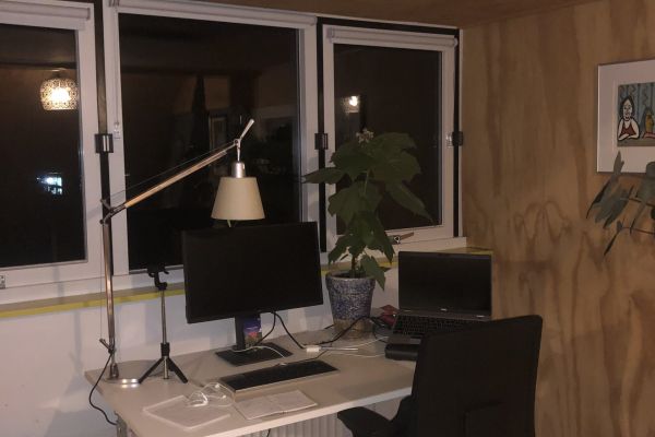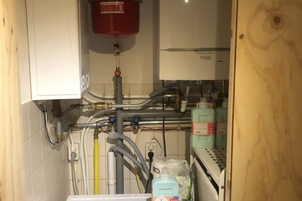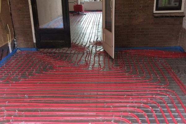 Vloerverwarming in de woonkamer, met daaronder schuimbeton (daarvoor zijn de balken weggehaald, iets wat heel spannend was). Decentraal ventilatiesysteem (fresh air), goed geïsoleerde zolder. Om de radiatoren minder te gebruiken hebben we infraroodpanelen aangebracht boven het bed en boven het bureau.