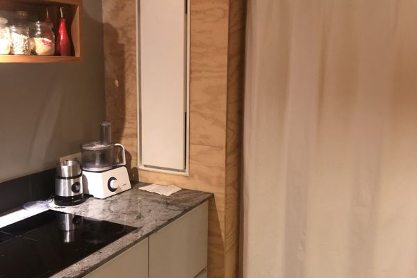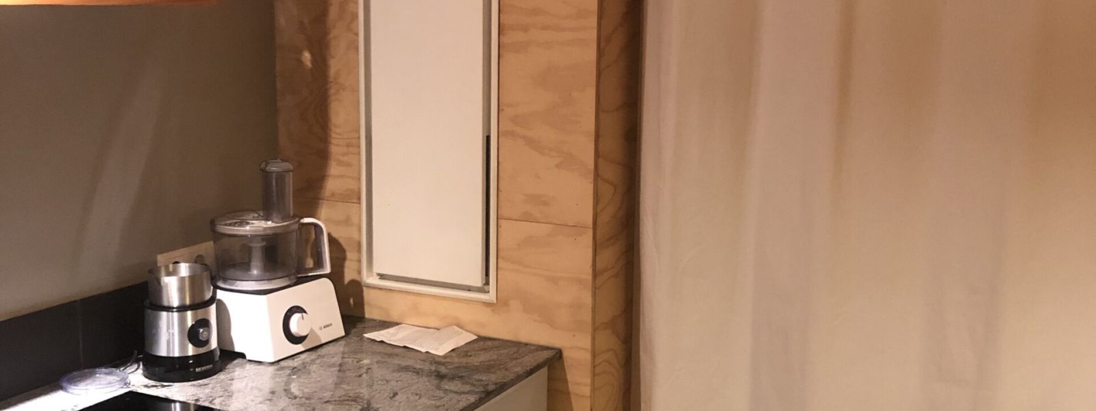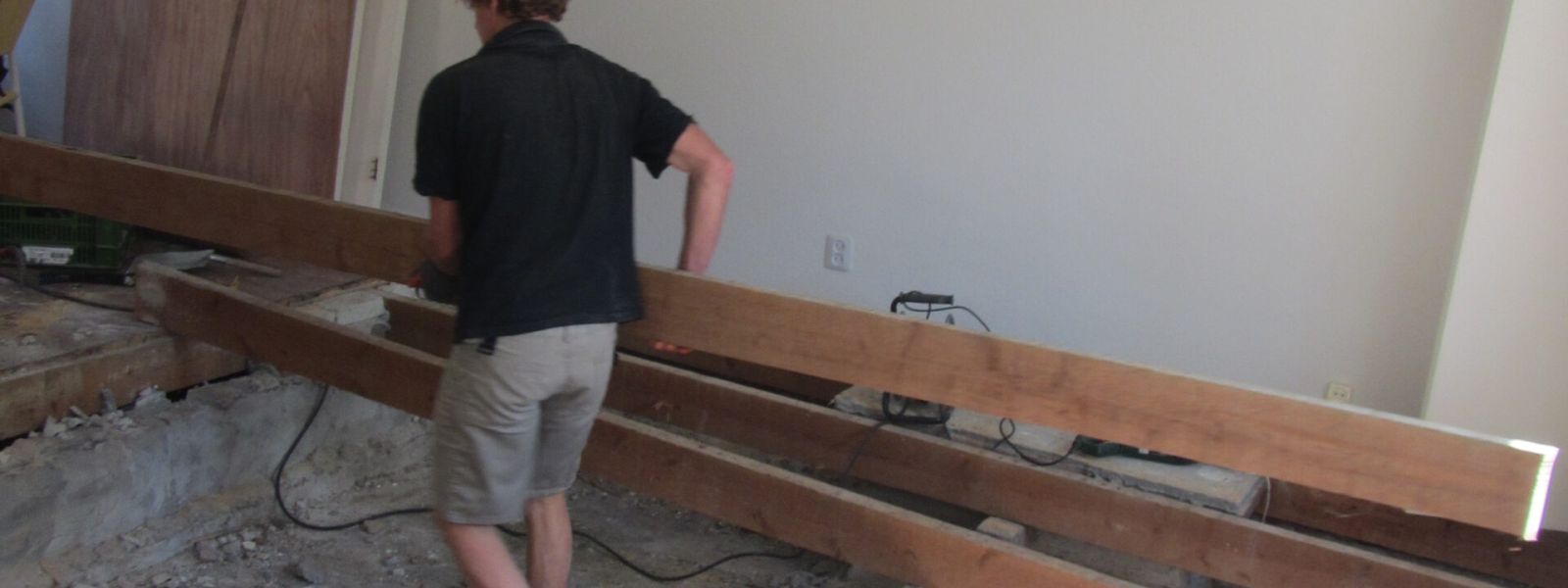 De slaapkamer en badkamer zijn beneden. De badkamer is recent verbouwd. De douche heeft een WTW (warmte terug winning systeem). Momenteel zitten we in een slaapkamer verbouwing. Deze kamer krijgt een goede isolatie onder de grond en op een nieuw dak. In de kamer komt een wandverwarming. Onze aannemer heeft voor de meter uitbouw ‘glasschuim’ gebruikt. Voor ons een nieuw product. In de kruipruimte van deze kamer komen schelpen. Stapsgewijs komen wij steeds verder bij ons doel om klimaatneutraal te worden.