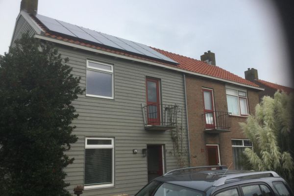 Ik heb in 2018 de helft gekocht van tweeondereenkap woning van Woontij. Huis binnen en buiten zwaar verwaarloosd. Daarom een drastisch plan: restaureren en van het gas af. Grote ramen 1/3 verkleind en isolatieglas ++; plafond boverdieping naar zolder geisoleerd; spouw reeds goed gisoleerd; slechte vochtabsorberende gevel met slechte voegen. Daarom totale gevel bekleed met zg. Cape Cod bekleding: “holle” verticale isolatieraggels met daarover horizontaal duurzaam geschilderd Fins rabat. Want een natte stenen muur onttrekt warmte aan woning en hete stenen geven warmte door aan woning;dat is door de houten bekleding heel anders. 12 zonnepanelen en opslag in accu’s: een boiler; elektrische panelen in leefruimtes en douche aangevuld met pelletkachel voor strenge kou.