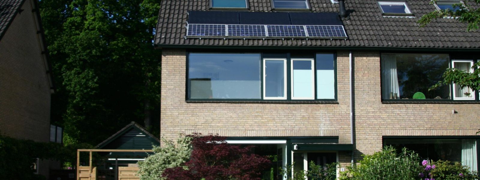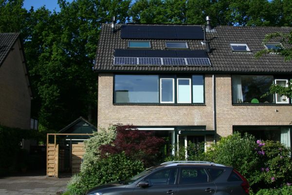 Beton skeletbouw grote 2-onder eenkap uit 1970 waarbij alle oude gevels, dak en de kruipruimte zijn geïsoleerd. De verdiepingsgevels met vacuumpanelen. Op de begane grond is alle glas Krypton gevuld HR++. Het huis heeft een cv haard waarmee het huis verwarmd kan worden. De andere warmtebrons is een warmtepomp, waarvan de buitenunit achter in de tuin in een schuurtje staat. Eventueel extra geproduceerde warmte door de cv haard wordt opgeslagen in een 1000l buffervat in de kruipruimte. Het warmteafgifte systeem bestaat uit low H2O Jaga convectoren waarvan een aantal met een Oxygen unit is voorzien die het CO2 niveau in het huis automatisch corrigeren. Het tapwater wordt in met een aparte warmtepomp met een 300l buffervat opgewekt. We hebben 24 zonnepanelen, dit grote aantal is nodig vanwege de afschaduwing door hoge eiken net achter ons grondstuk. De woning is teruggebracht van een energierekening van 300 Euro/mnd toen we de woning kochten naar ca 50Euro per maand. We hebben nog een gasleiding alleen voor het koken, maar zijn van plan dat ook electrisch te maken. We hebben ook een geisoleerde voordeur laten aanbrengen. Aan de binnenzijde zijn al deze aanpassingen nauwelijks te zien.