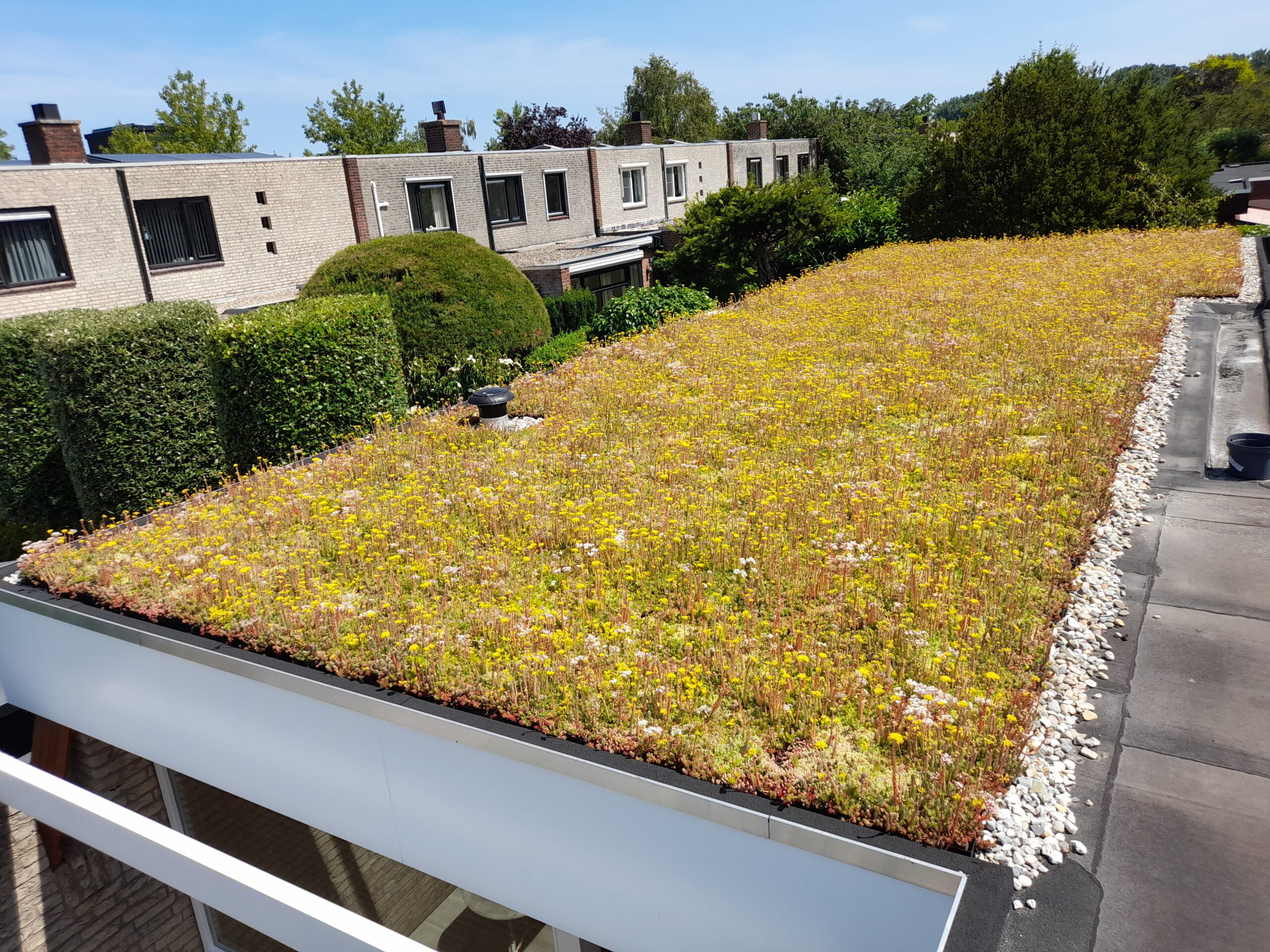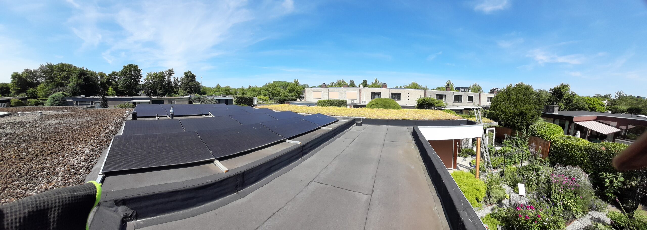 Zo optimaal mogelijk geïsoleerd (dak, gevels, ramen, deuren, vloer), vloerverwarming, balansventilatie met warmteterugwinning, 22 zonnepanelen en groen sedum dak.