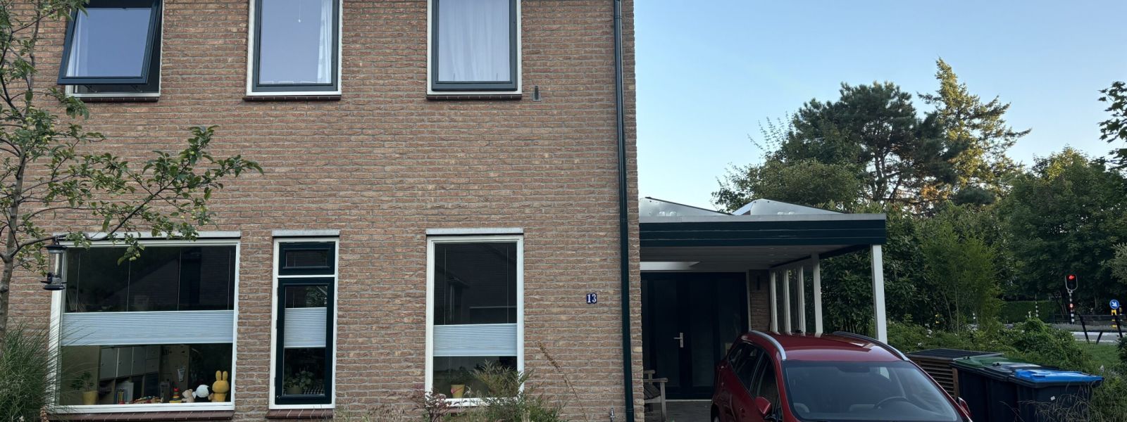 Een twee onder 1 kap woning die stap voor stap helemaal verduurzaamd is. Het begon voor ons enkele jaren terug met het maken van een plan hoe deze uit 1984 twee onder 1 kap woning zo veel mogelijk te verduurzamen zonder dat het al te gek wordt. Als eerste hebben we een WTW ventilatie unit op zolder geplaatst en de benodigde buizen door het huis heen gepuzzeld. Hiermee was de hinderlijke tocht door de ventilatieroosters verleden tijd en daalde de gasrekening met 20% en konden alle kieren in het huis goed gedicht worden. Toen het tijd was de kozijnen te laten verven hebben we het glas vervangen door hr++ in de bestaande kozijnen en zijn ook de spouwmuren extra geisoleerd. Als laatste stap hebben we de cv ketel de deur uit gedaan en zelf vervangen door een panasonic lucht-water warmtepomp die de bestaande radiatoren verwarmd. Het boilervat voor warmwater wordt ook door de warmtepomp verwarmd en staat in de garage. Met 19 zonnepanelen op het dak is dit huis meer dan netto energie neutraal over het jaar heen.