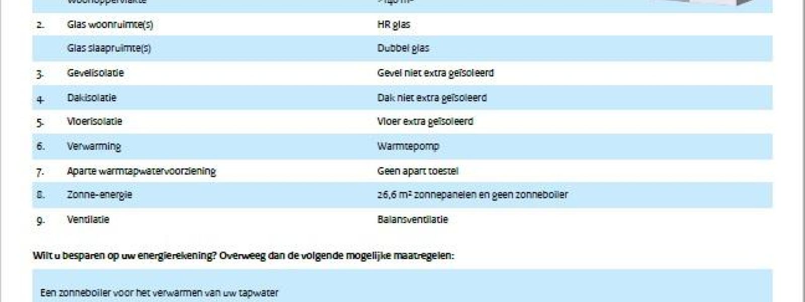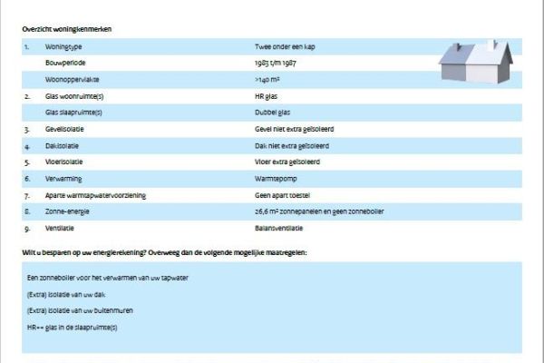 Beschrijving energievoorziening van de woning