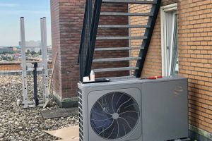 In de zomer kan de koude lucht van deze boiler gebruikt worden om de woning te koelen.