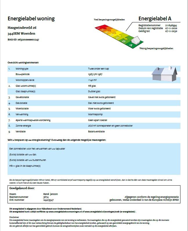 Beschrijving energievoorziening van de woning
