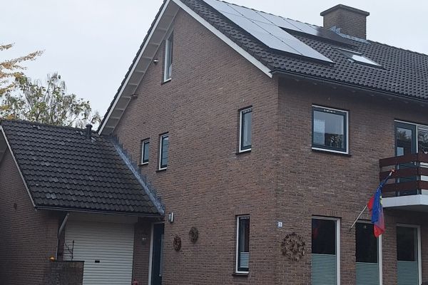 18 zonnepanelen met ca 5600 kWh opwek en verbruik in huis 4850 kWh (2900 kWh warmtepomp en 1950 kWh huis)