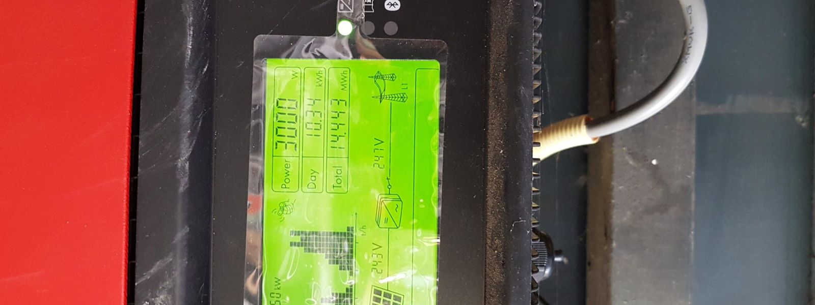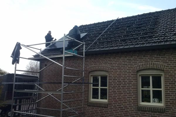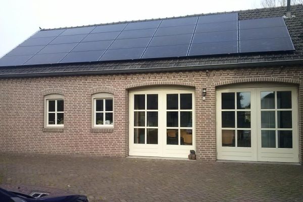 Het huis bleek zonder enorme aanpassingen niet zo geschikt te zijn voor makkelijke ombouw naar energie neutraal. Wel is er voldoende dak voor zonnepanelen. Daar dus mee begonnen en 43 zonnepanelen geplaatst. 16 serieel en 27 parallel. In het kantoor hebben we infrarood panelen voor de verwarming. Voordeel is verwarming op plekken waar je het wil hebben. nadeel is dat je je veel bewuster wordt van de kosten van verwarming. In mijn geval laat ik de verwarming vaak uit en hou ik mijn jas aan terwijl ik er (alleen) zit te werken.