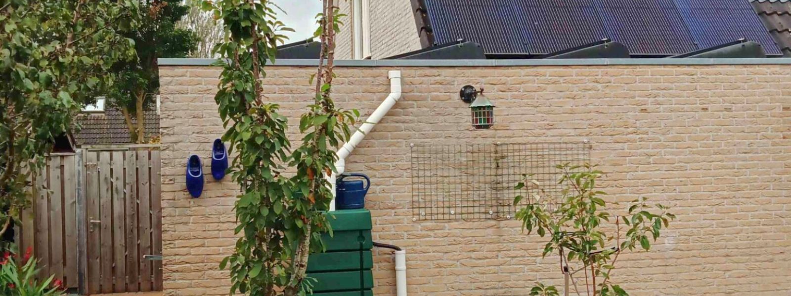 Op de zolder hebben we een boiler van 100 liter staan die is voor het douchen en voor beneden in de keuken, ook dit bevalt prima.