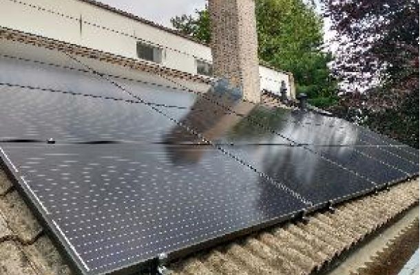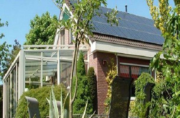 De woning bevat 15 zonnepanelen die direct op de accu van 8kWh zijn aangesloten. De volledig elektrische warmptepomp bevat een 300 liter vat met elektrische boiler als backupfunctie. De accu is boven op zolder geplaatst.