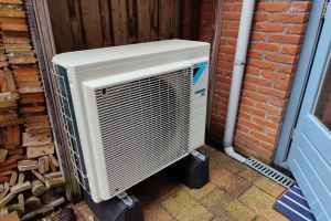 Daikin 8kW 3-fasen warmtepomp met buitenunit en 300L warmwatervoorziening tbv tapwater en 100L buffer tbv de verwarming.