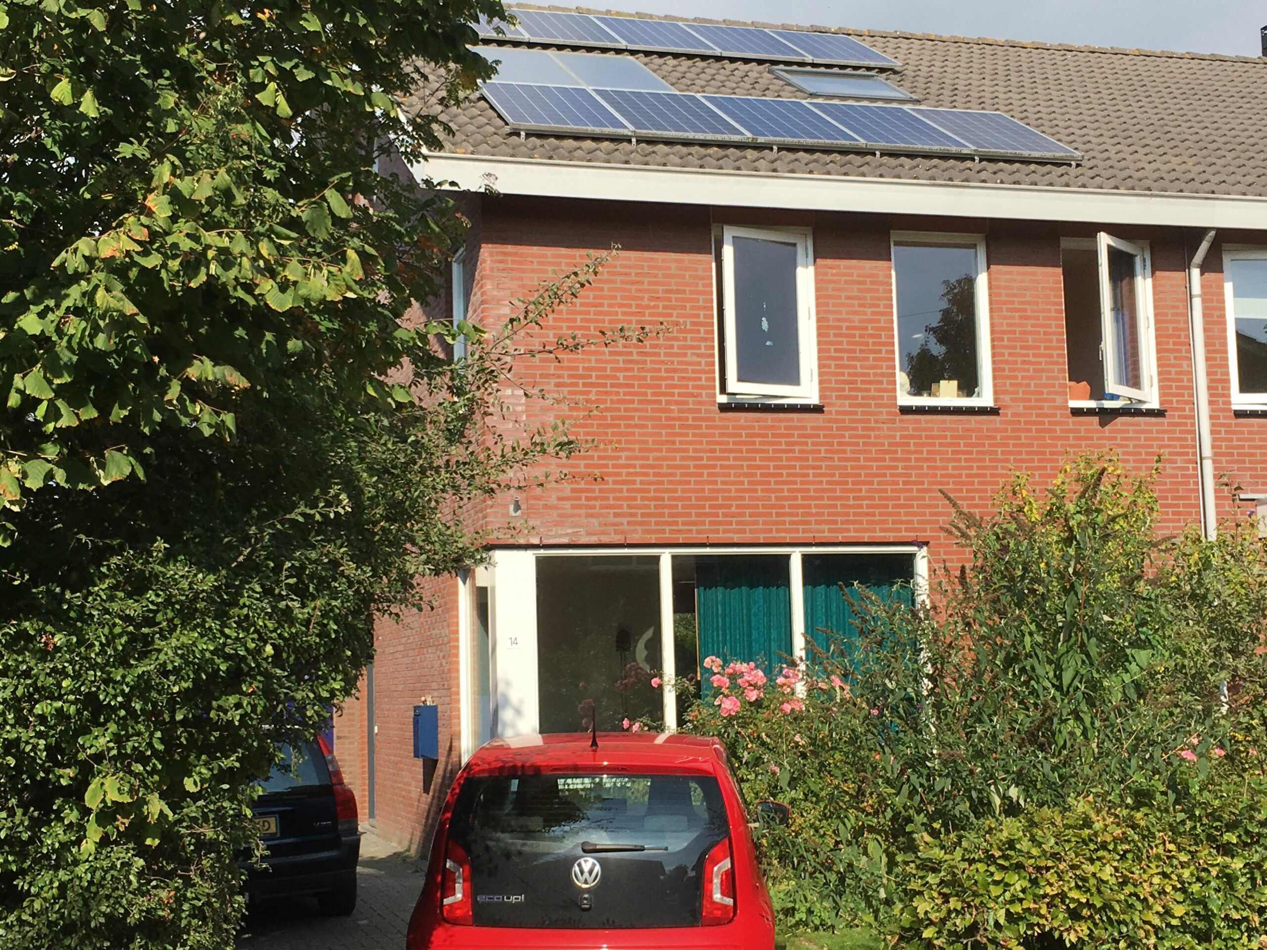 De twee onder een kap woning is gebouwd in 2002. Het huis is geïsoleerd volgens de toen geldende normen. Dat betekent onder meer balansventilatie, spouwmuurisolatie, vloer- en dakisolatie. Ook beschikt het huis over een zonneboiler. We hebben sinds 4 jaar 10 zonnepanelen waarmee we voor ongeveer 60 procent in onze eigen electriciteitsbehoefte kunnen voorzien. Sinds 28 september 2018 hebben we een hybride warmtepomp. We gaan de komende tijd door met verduurzamen en willen onder meer op inductie gaan koken.