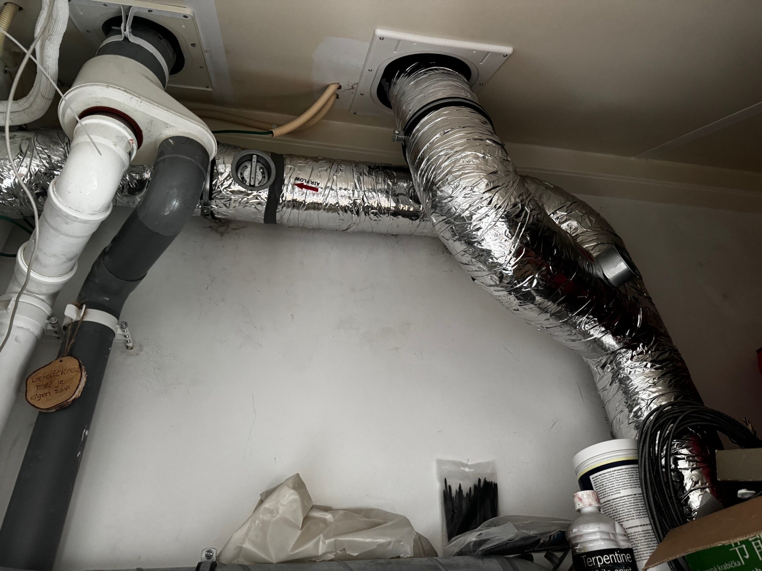 Mechanische ventilatie. De mechanische ventilatie is de aanvoer is van de warmteboiler. De warmteboiler gebruikt de warmelucht en voert de koude lucht in de koude maanden naar buiten (en in de warme maanden terug het huis in voor airco.