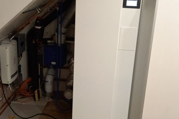 Zonnepanelen voor de stroomopwekking. warmtepomp voor sww en verwarming