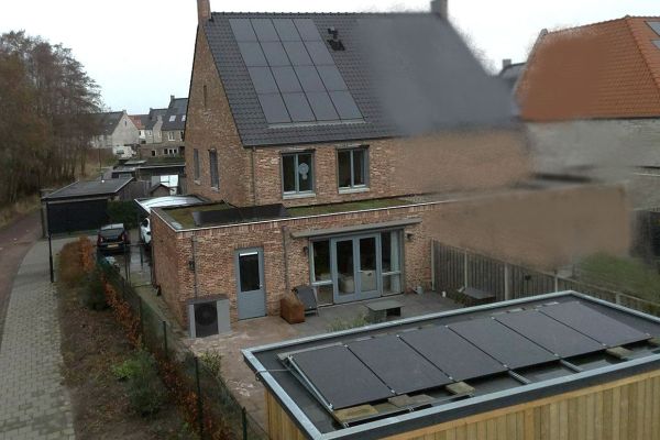In oktober 2020 zijn er nog 8 PV panelen geplaatst op het dak van de schuur/overkapping.Samen met de 16 indak PV panelen die tijdens de bouw zijn geïnstalleerd, verwachten we bijna nul op de meter te krijgen.