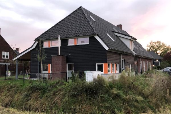In eigenbeheer gebouwde helft van een nieuwbouw langgevelboerderij in de wijk Heikant in Sint-Oedenrode. In 2017 kochten we de grond en in mei 2019 verhuisden we naar de nieuwe woning.