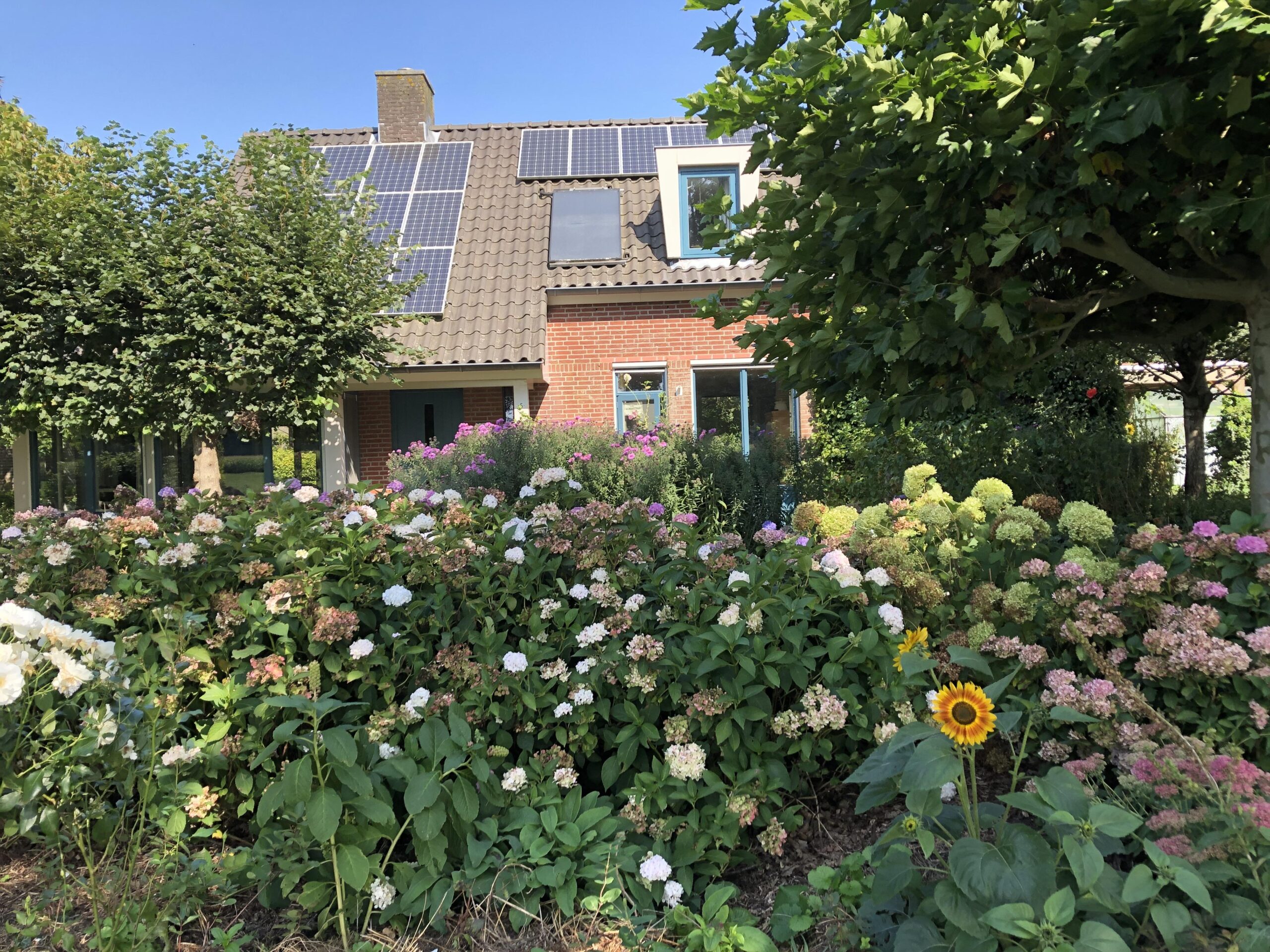 We hebben een vrijstaand huis. Daarbij hebben we al een groot aantal maatregelen genomen. Uiteraard zonnepanelen, zonnecollector, hybride warmtepomp, regenwateropvang e.d Maar ook buiten veel klimaatmaatregeeln getroffen al, zoals halfdoorlaatbare verharding, groen dak, klimop.