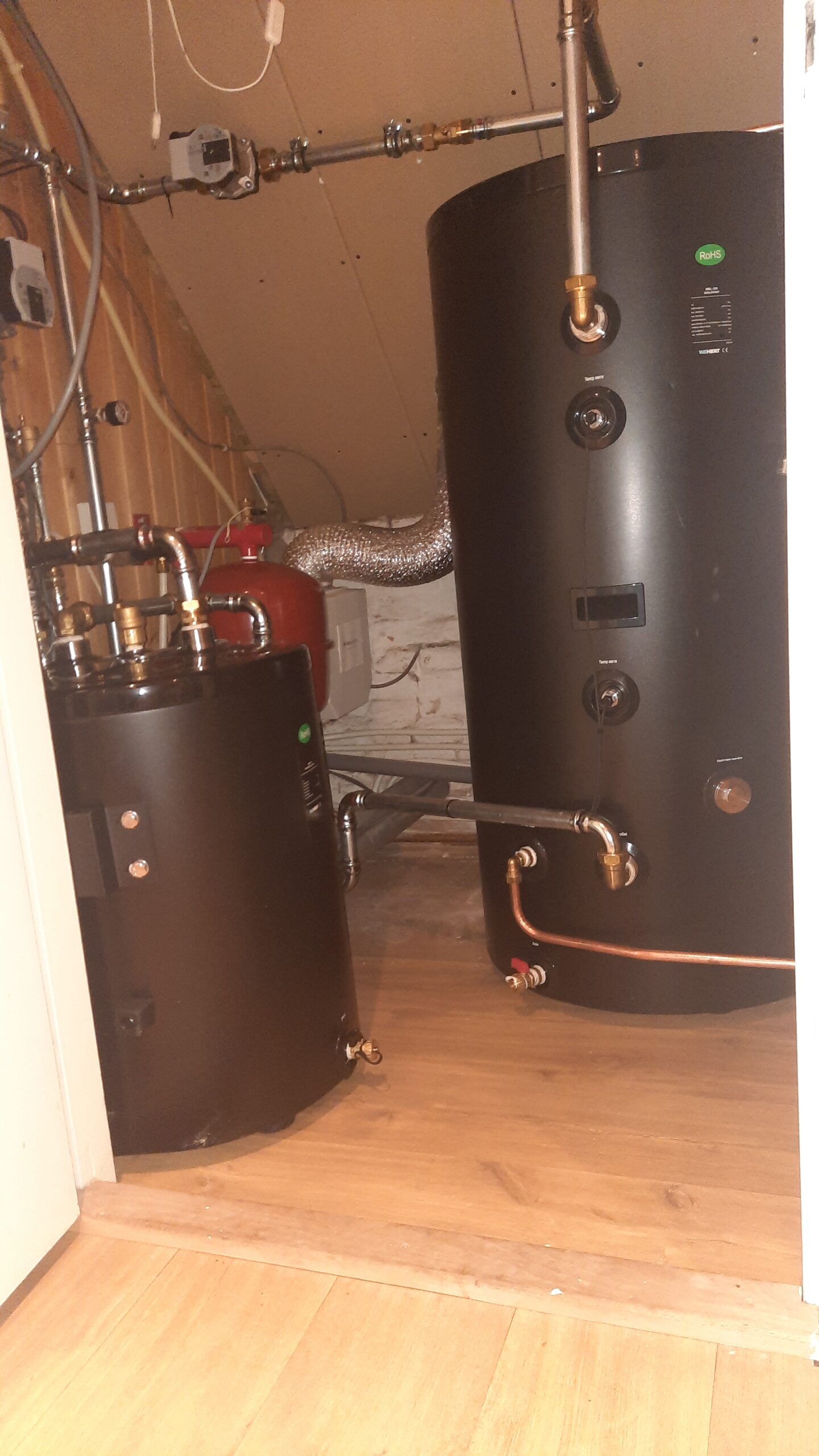 De woning is van het gas af en een warmtepomp op het platte dak levert de verwarming en het warme water . Het nieuwe bouwdeel heeft vloerverwarming. De verdieping van het oude deel heeft radiatoren, maar die wordt nauwelijks verwarmd. De B&B in het oude deel wordt incidenteel verwarmt met een elektrische kachel. Er zijn 9 zonnepanelen, maar wel met veel schaduw van grote bomen. We hebben ook aandelen in een windmolen in Groningen.