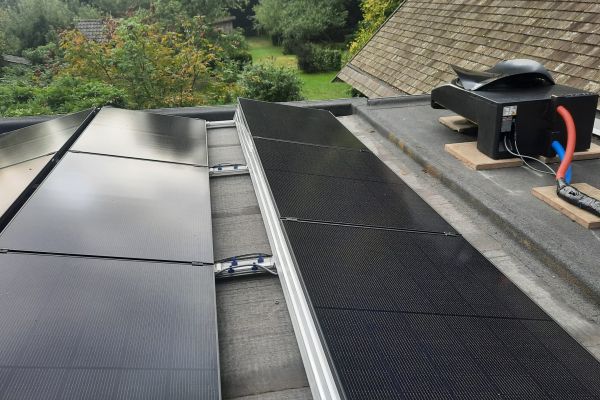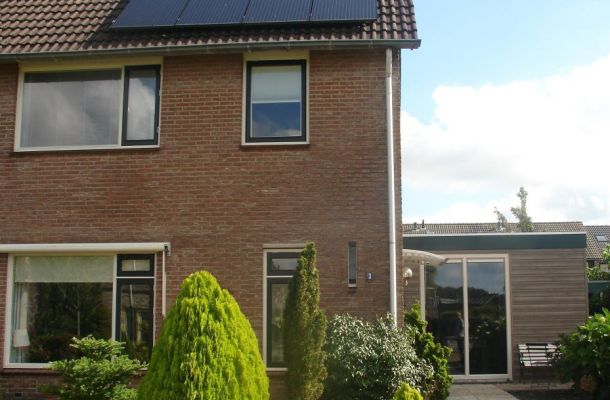 Onze woning bestaat uit een oud deel uit 1870 en een nieuw deel uit 2018. In de woning hebben we ook een atelier en een B&B. Het oude deel is vaak verbouwd en inmiddels grotendeels geïsoleerd. Het nieuwe deel bestaat uit een eikenhouten constructie, veel glas en daken met vlasisolatie en een bedekking met houten shingles. In september 2025 zijn we van het gas af gegaan door de installatie van een all-electric warmtepomp en zonnepanelen.