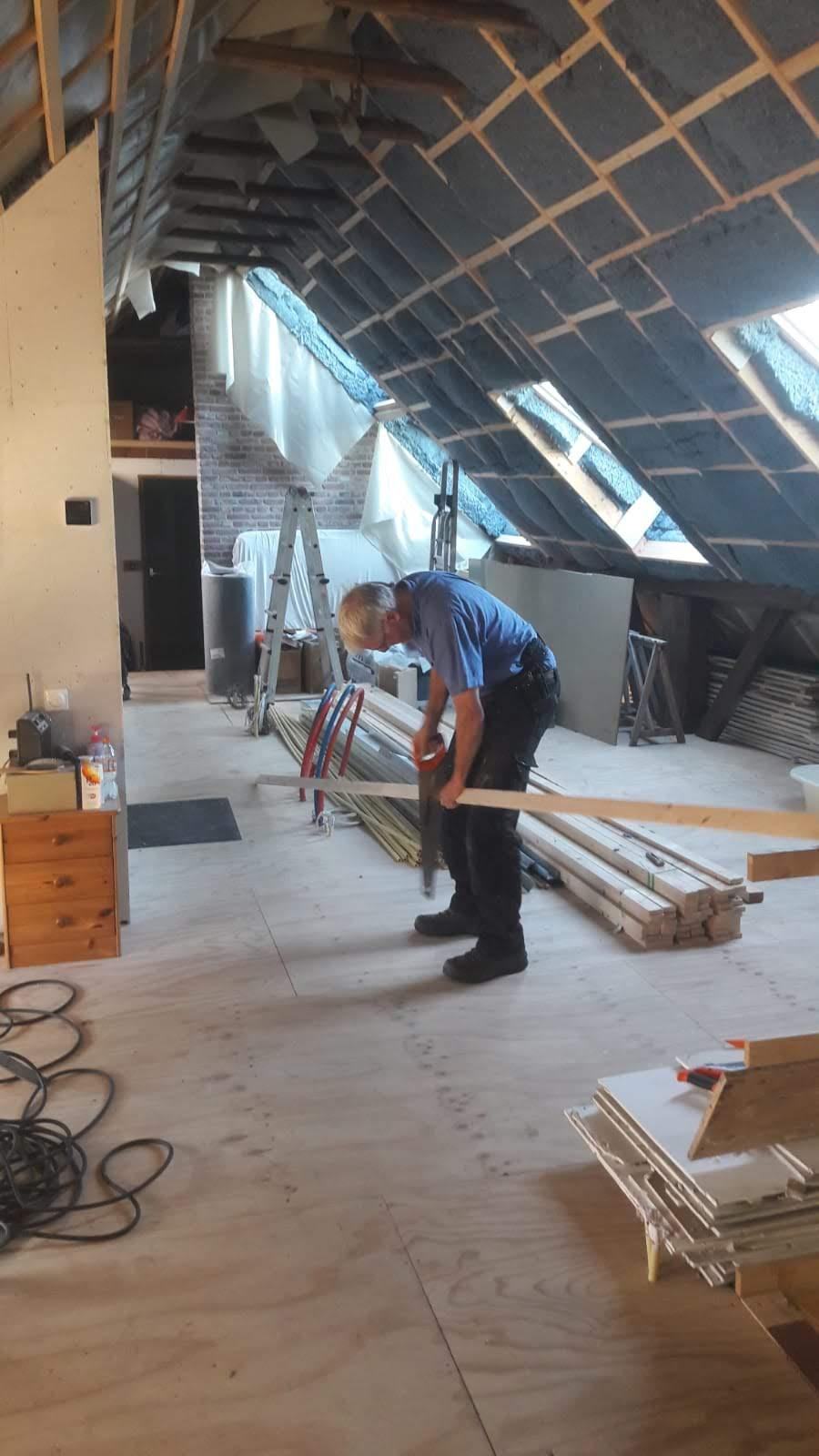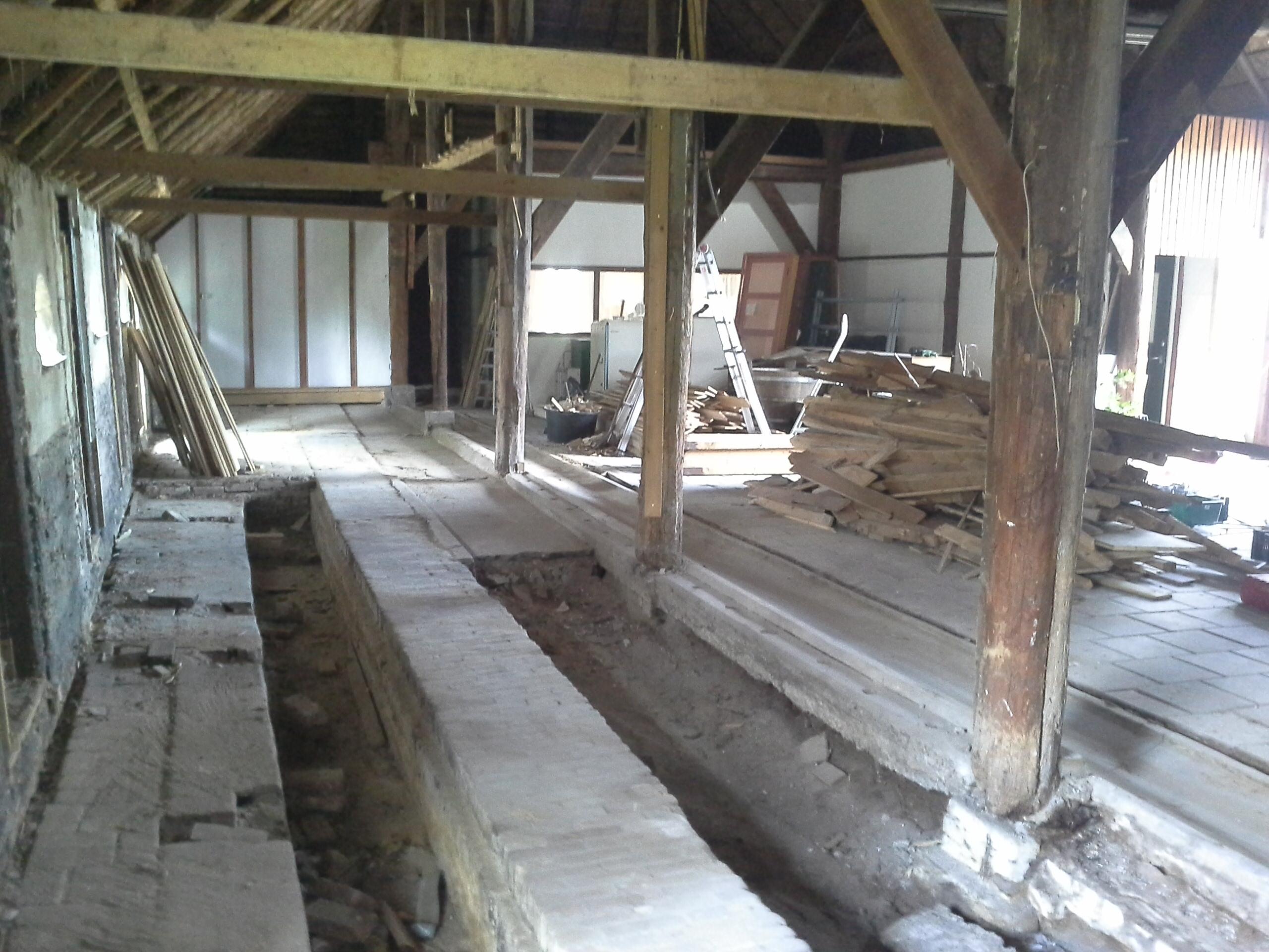 Wij zijn vanaf april 2016 onze woonboerderij aan het verbouwen/renoveren. Alleen de authentieke delen van het huis zijn blijven staan (muren, kelders en bedsteewand). We doen veel zelf maar hebben ook een aannemer die ons adviseert en een deel van de uitvoering heeft gedaan. Sinds november 2018 waren we zo ver dat we er weer in konden wonen. De verbouwing van het huis is nog niet klaar maar we hebben grote stappen gemaakt, ook op het gebied van verduurzamen en isoleren van een oude woning. Inmiddels draait de warmtepomp al een aantal jaar naar tevredenheid en hebben we de 1e fase van de verbouwing nagenoeg afgerond. Op het gebied van duurzaamheid kunnen we onze ervaring delen op het gebied van: warmtepomp (aardwarmte) t.b.v. vloerverwarming en warm water (geen gas meer) in combinatie met laagtemperatuur radiatoren op verdieping ;Duurzaam isolatiemateriaal tbv muren (pavaflex) en dak (metisse),gebruik van duurzame verf (op advies van Blauw Vlas, Havelte),Marmoleum op verdieping met vloeropbouw op houten vloer (Fermacell egelisatiekorrels en geluidsdempende Fermacell loopvloer).We proberen alles wat we doen zo duurzaam mogelijk te doen, maar het moet financieel ook haalbaar zijn, dat is een uitdaging.