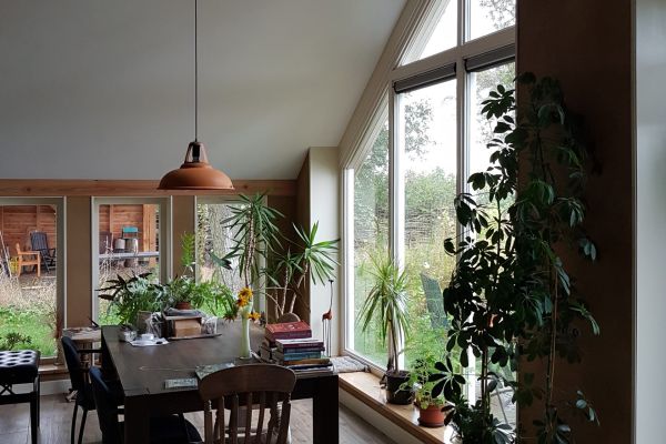 Herstelde / verbouwde boerderij uit ca. 1860, volledig geisoleerd en voorzien van bodemwarmtepomp en zonnepanelen.@Een nieuw opgetroken spouwmuur met vlasisolie, overige muren en dak dmv voorzetwanden met houtvezelisolatie ( pavatex ). Vloer geïsoleerd en vernieuwd en overal vloerverwarming. HR + + glas.@Gasloos, warmtepomp met gesloten bron, zonnepanelen – energieneutraal.@Gebruik natuurlijke materialen, damp open gebouwd, wanden afgewerkt met leemstuc.