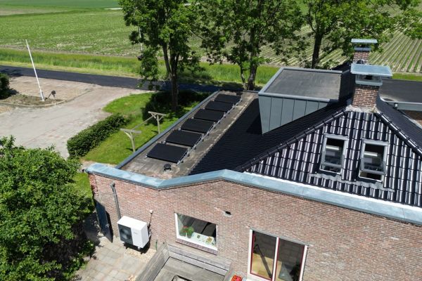 Op de nieuwe aanbouw zijn nog eens 6x 300Wp panelen geplaatst. De benodigde warmte voor warmwater en verwarming wordt door middel van een 7kW lucht/water warmtepomp opgewekt. Deze warmtepomp(Vaillant aroTHERM plus) werkt met een koelmiddel R290 welke een zeer kleine impact heeft op het milieu.