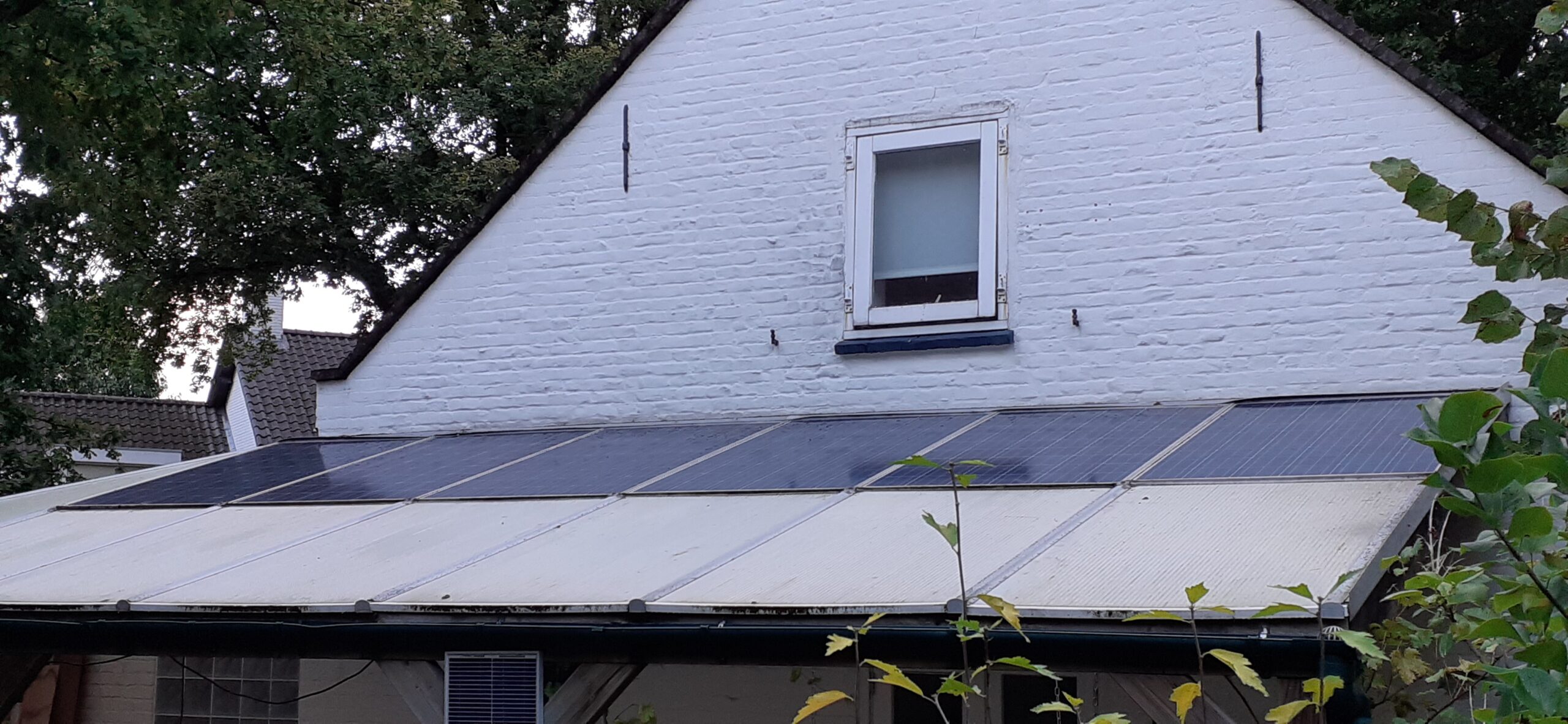 Er zijn in 2019 10 zonnepanelen van 310 Wp op het dak van het huis geplaatst (Zuid), waarbij de 6 reeds aanwezige zonnepanelen van 185 Wp een nieuwe bestemming hebben gekregen op de overkapping aan de tuinzijde (West). Gemiddelde jaaropbrengst ca. 3500kWh.