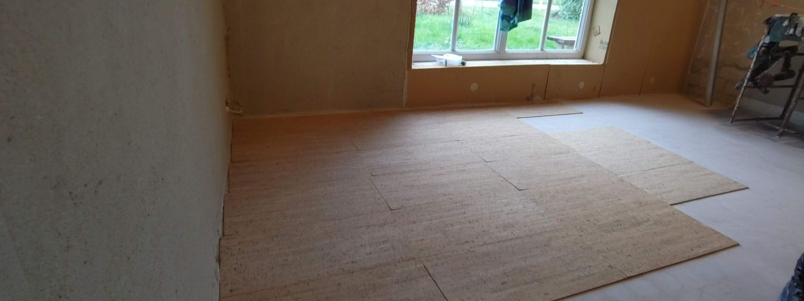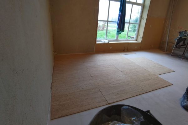 Vloerisolatie : 10 cm schelpen met daarbovenop 25cm kalkhennep blokken