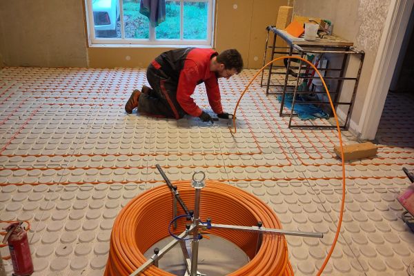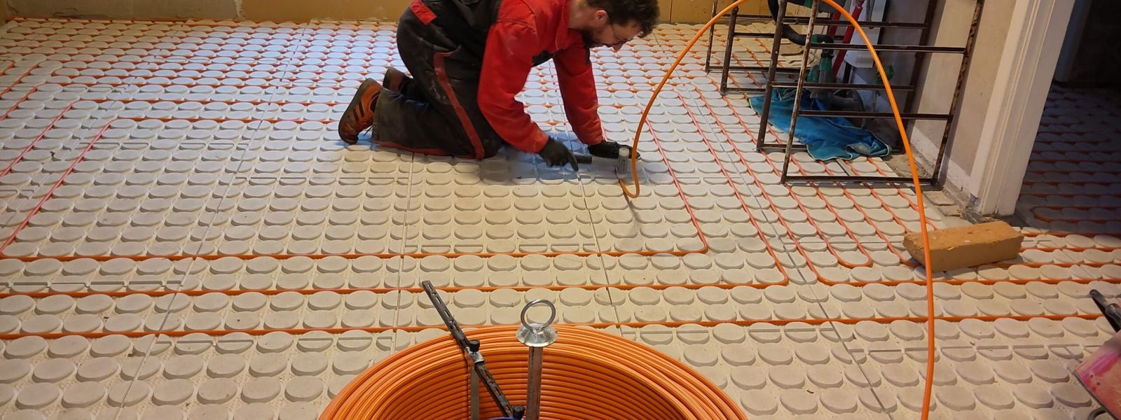 Vloerverwarming. Kalkhennepblokken als warmtebuffer (ca. 6kWh effectief)