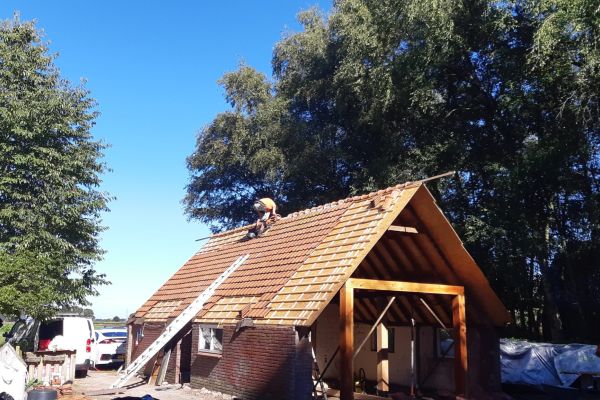 Achtergevel: halfsteens muur vervangen voor houtskeletbouw 12cm houtvezelmatten