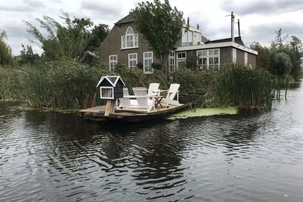 Boerderij van ongeveer 1900, aan het water, op een eilandje, alleen bereikbaar per boot (bijv Kleine Giethoorn café roeiboten).