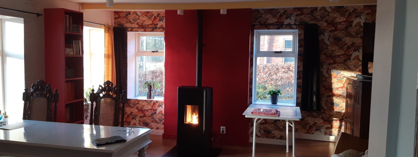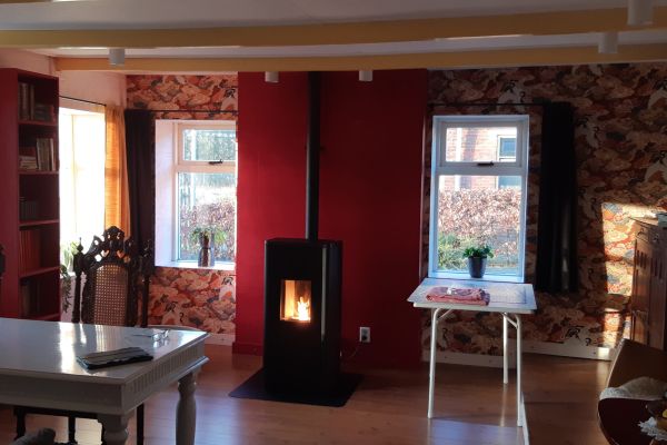 Vrijstaande kleine woning uit ca. 1900. Van binnen zijn de muren geïsoleerd met 14 cm dikke steenwol. De vloeren zijn geïsoleerd met PIR-platen. Ook op de verdiepingsvloer liggen deze. De verdieping wordt niet gebruikt. Verder hebben de ramen dubbel glas. De ramen naast de voordeur zijn voorzien van voorzetramen. Voor alle ramen hangen gordijn. Verder hebben we zonnepanelen. Op water besparen we middels een separaattoilet. Hierbij gaat de urine naar het riool, maar de vaste ontlasting wordt opgevangen en gecomposteerd (kan natuurlijk ook in de groenbak). Verwarming via pelletkachel. Omdat het een kleine woning is, de plafonds tamelijk laag zijn, kunnen bijna alle ruimtes met deze kachel worden verwarmd. De badkamer en logeerkamer worden, indien nodig, verwarmd door elektrische kachels. Verder zijn wij ook aardgasvrij.