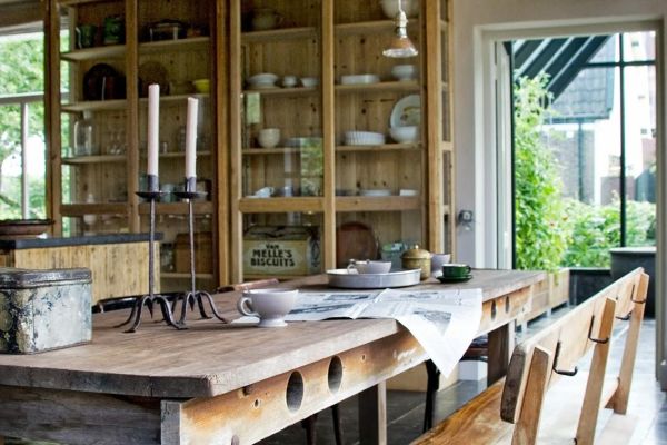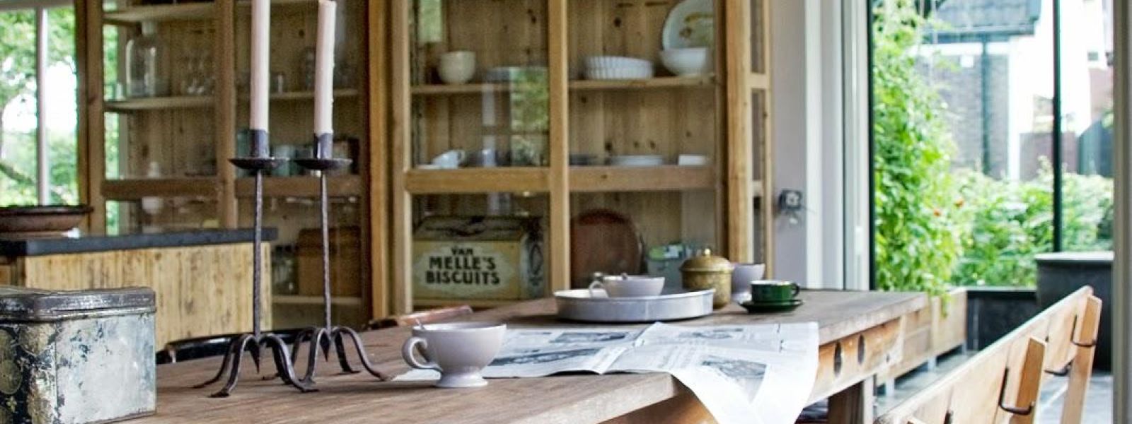 “Het pure karakter en de hoge kwaliteit van sommige in het verleden toegepaste materialen – die na jarenlang gebruik nog geen sporen van verval vertoonden – hebben ook mij verleid met deze materialen een huis te (ver)bouwen. Als er geen oude materialen voor handen waren heb ik gekozen voor nieuwe, niet samengestelde, pure materialen. Dus bijvoorbeeld geen beton, gipsplaten, mdf, kunststof e.d.. Het gebruik heeft geresulteerd in een heel goed woonklimaat met optimale vochtregulering waarbij ventilatie nauwelijks nodig is.”