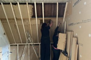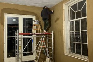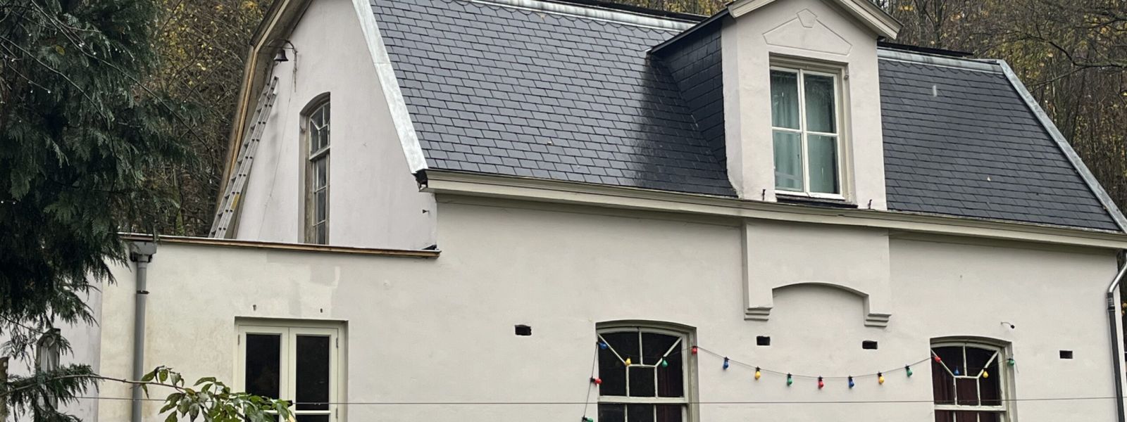Restauratie van dit gemeentelijk monument was dus broodnodig. Met hart en ziel hebben we het huis de aandacht gegeven die het al zo lang nodig heeft en zeker verdient. Vanwege die gebrekkige aandacht speelt de wet van de remmende voorsprong hier geen parten. Dat is ook een voordeel: het heeft ons in de gelegenheid gesteld om de restauratie meteen op zijn duurzaamst uit te voeren. Dat betekent dus zonder gas, het vizier gericht op nul-op-de-meter, optimaal en biobased geïsoleerd, WTW-ventilatie, een gelijkstroomnetwerk en een parallel regenwaterleidingsysteem.