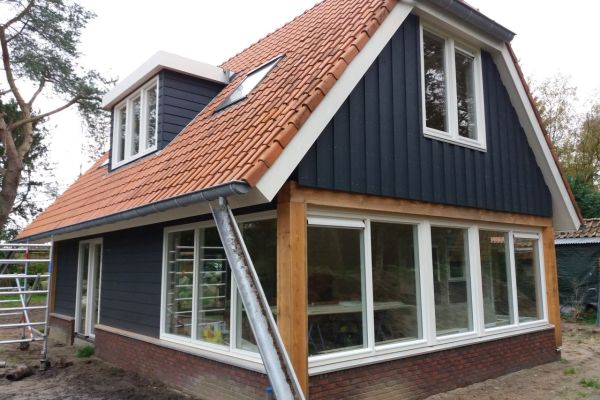 Oorspronkelijk huis uit 1906 in 2019 deels ver(nieuw)bouwd tot een energiezuinige woning.Het oorspronkelijke woudhuisje is inmiddels voorzien van HR glas, pavatex houtvezelisolatie en wordt met airco verwarmd.Houten huis, bio-based, waar mogelijk gebruikte bouwmaterialen toegepast.Vloerisolatie: schuimbetonWandisolatie: Pavatex (10 cm) en Hennepvezels (12 cm) (totale rc 9,5)Dakisolatie: Gutex: (24 cm) (totale rc 10)Verwarming en warm water: Wolf zonnecollector 800 liter met 4 collectoren, Walltherm hout-cv kachel (92 % rendement) middels eigen snoeihout, evt. elektrisch naverwarmenElectriciteit: 39 panelen (10,5 Kwp)Opvang en opslag van regenwater (in droge zomers voor irrigatie van de tuin. In de toekomst mogelijk voor WC en wasmachine)Passieve zonne-eneregie d.m.v. grote dakoverstekken.