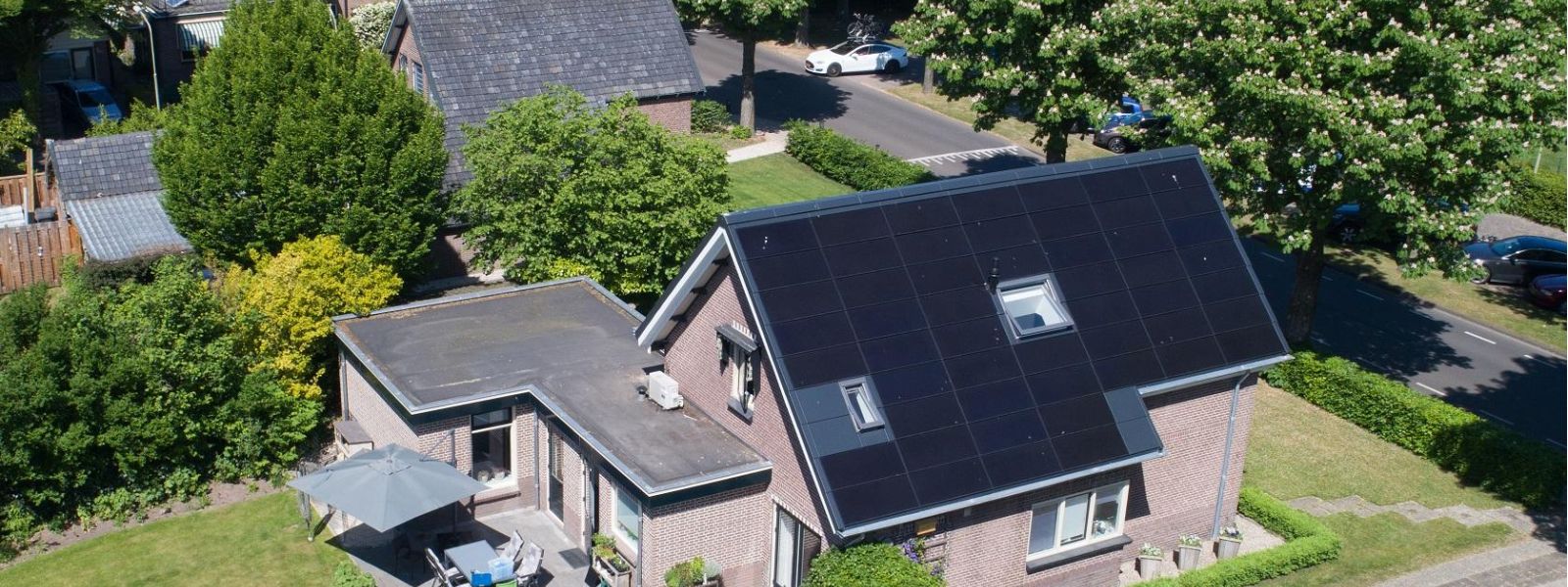 De 100 zonnepanelen op het energiedak leveren op jaarbasis ruim 10Mw energie op, en dat is genoeg voor zowel de energiebehoefte van de woning als ook voor de electrische auto. De woning heeft nog wel een gasgestookte HR+ ketel, maar als die aan vervanging toe is zal die ook worden ingeruild voor een warmptepomp waarna de woning richting 0 op de meter gaat.
