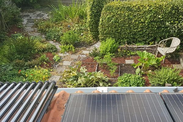 Samenvatting: Vrijstaand herenhuis uit 1912, vanaf 2012 door diverse maatregelen verduurzaamd waardoor een sprong is gemaakt in energielabel van E (2,18) naar B (1,1) en de woning qua electriciteit meer dan zelfvoorzienend is gemaakt, met behoud van het karakter van het huis. Dankzij subsidies de kosten van maatregelen met circa 50% kunnen verlagen. Hierdoor ook in economisch opzicht duurzaam. Ook moestuin aangelegd om stap te maken in zelfvoorzienendheid qua voedsel. Op platte dak in 2012 vrijwel platliggende zonnepanelen laten aanleggen wat destijds best vernieuwend was en tevens de enige oplossing vanwege beschermd dorpsgezicht. Tevens een van de eersten met de tegenwoordig al bekendere ‘heatpipes’ voor warm tap water.