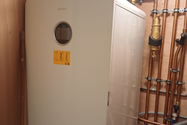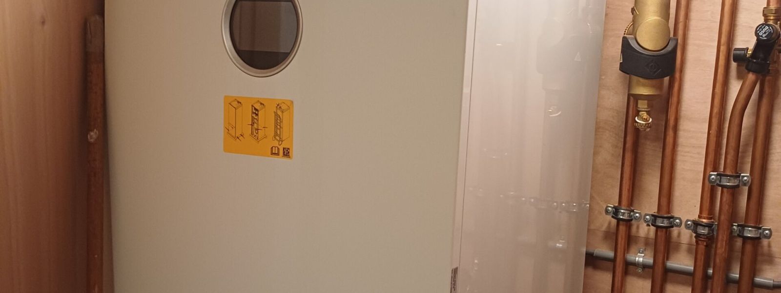 Omdat het huis nu goed geïsoleerd is, zijn we ook van het gas af. We verwarmen nu met een warmtepomp (met propaan als koudemiddel). Om leidingen en apparatuur zo lang mogelijk goed te kunnen gebruiken, hebben we ook een waterontharder staan.