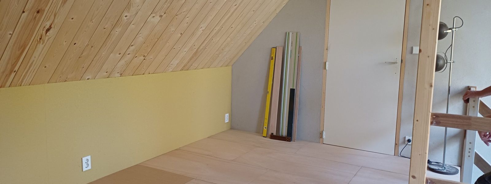 Voor het meeste verfwerk kiezen we nu voor milieuvriendelijke verven. ‘Ouderwetse’ verven als lijnolieverf en keim zijn dan leuke producten. Maar niet altijd praktisch voor de toepassing die we voor ogen hebben. Per project kijken we dus wat het best toepasbaar is. Buiten hebben we lijnolieverf gebruikt voor de dakkapel, de voordeur en de garagedeur. Binnen hebben we boven keim gebruikt op het houtwerk. Maar de vloer boven werken we af met een ‘normale’ verf (wel met eco-label).