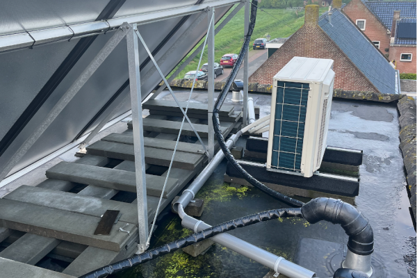 Buffervat 500 liter voor vloerverwarming in de woonkamer, keuken, bijkeukens. Radiatoren in de voorkamer en de appartementen boven de schuur. Aanvullend 3 Airco binnenunits (2 in de woonkamer/keuken) en 1 in de Hoofdslaapkamer op één buitenunit op het dak. Deze zijn ook geschikt om te verwarming. Het buffervat kent heef 4 spiralen: één voor tapwater en drie voor de verwarming van het water in het buffervat. Twee van deze spiralen zijn nu in gebruik: eerste warmtebron: 3 zonnecollectoren op dak, tweede warmtebron: een pelletketel, derde warmtebron (in de toekomst): een warmtepomp. Verder 20 zonnepanelen op het dak (5500 kwh per jaar). Kosten op dit moment: Electriciteit: gemmiddeld 60 euro per maand Pellets: gemiddeld 180 euro per maand. Er is nog geen nieuw energielabel aangevraagd. Het huidige label is niet meer van toepassing omdat deze bepaald is vóór alle maatregelen m.b.t. isolatie en energievoorziening.
