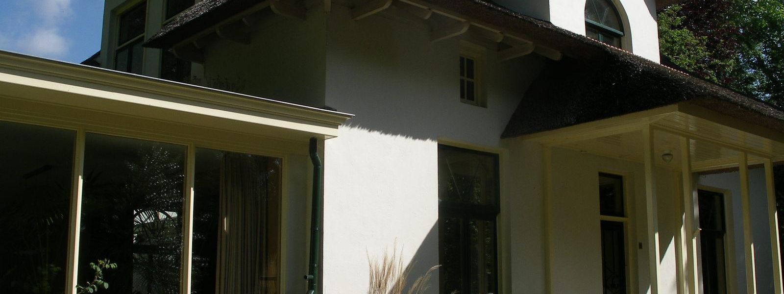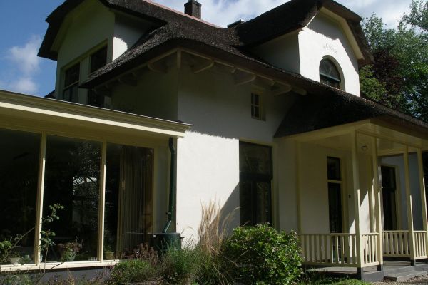 Vrijstaande villa met rietendak. Bij de verbouwing in 2008 is zoveel mogelijk met duurzame damp-open materialen zoals Pavatex en leem gewerkt.Ook zijn een aantal maatregelen genomen om de woning energiezuiniger te maken, het geheel is voorzien van hoogrendementsglas, vloer en wandverwarming d.m.v. een kleine cv ketel.In de badkamer is gebruik gemaakt van een combinatie van leem en tadelakt, waardoor een goede vochtregulatie ontstaat, de tadelakt is schimmel- en bacteriewerend.