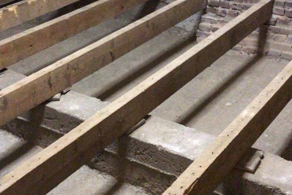 Houten begane grond vloer volledig eruit, kruipruimte gevuld en gïsoleerd met Rc 3,5 m2K/W