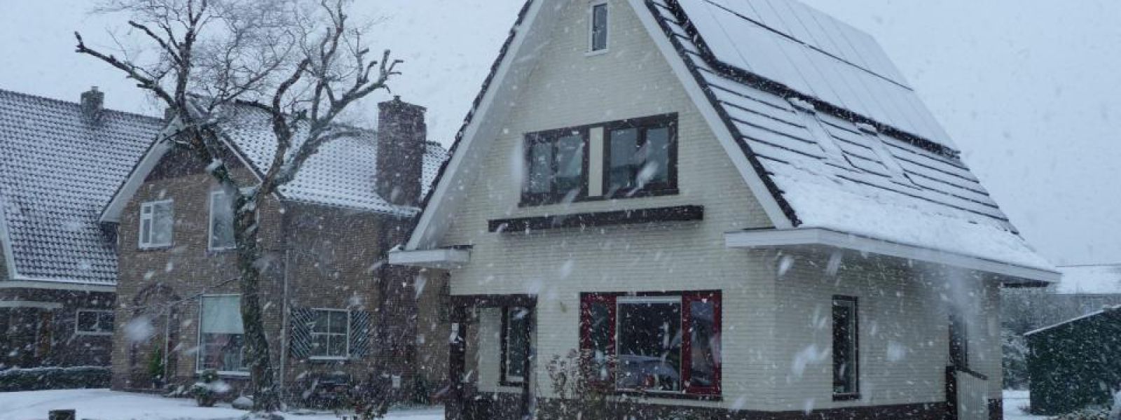 Op de garage liggen 8 panelen op het Zuiden en 8 op het Noorden met een geringe dakhoek om de impact in levering van energie vast te stellen.