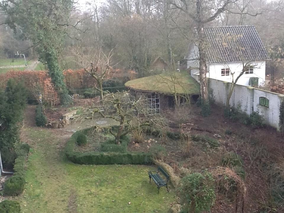 Het tuinhuis is van restmateriaal opgebouwd en voorzien van een sedumdak.