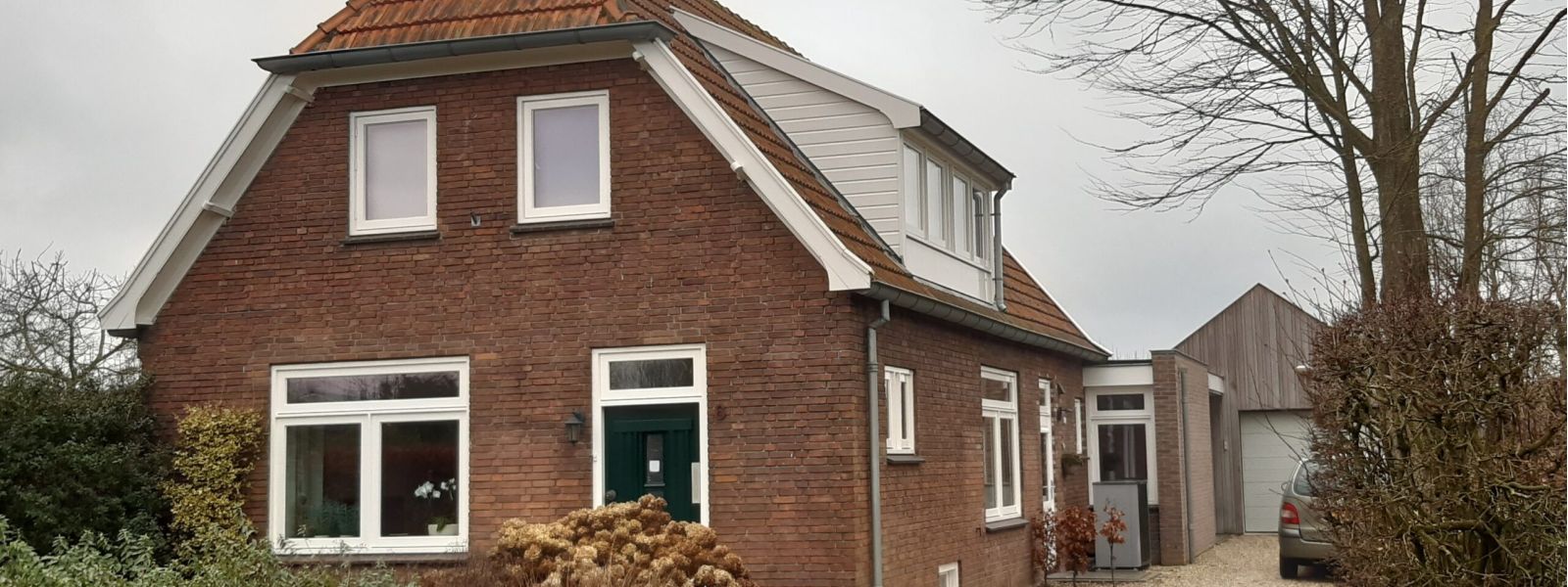 In 2020 hebben we de woning verduurzaamd, waarbij vooral de woonkamer en hal grondig zijn aangepakt. De houten vloerconstructie in de woonkamer is volledig verwijderd en de kruipruimte is volgestort met schuimbeton. Hier zijn PIR-isolatieplaten opgelegd waarop vloerverwarming is aangebracht. De spouwmuur is geïsoleerd en de buitenmuren in de woonkamer en het toilet zijn daarnaast aan de binnenzijde geïsoleerd. De begane grond excl. hal wordt verwarmd op kamertemperatuur, de hal en de bovenverdieping worden niet of nauwelijks verwarmd. De scheiding tussen het verwarmde en niet verwarmde deel, bestaande uit de verdiepingsvloer en de binnenwand tussen woonkamer en hal, is geïsoleerd. Onder de hal is een kelder. De vloer van de hal en de trap in de hal zijn vanuit de kelder aan de onderzijde geïsoleerd met PIR-isolatieplaten. Het dubbelglas is in de hele woning vervangen door HR++. In 2022 is met de houten balken van de gesloopte vloer uit de woonkamer een loods gebouwd, hierop zijn vijftien zonnepanelen gelegd. Hiermee hebben we nul-op-meter voor de woning en het gebruik van een elektrische auto gerealiseerd.