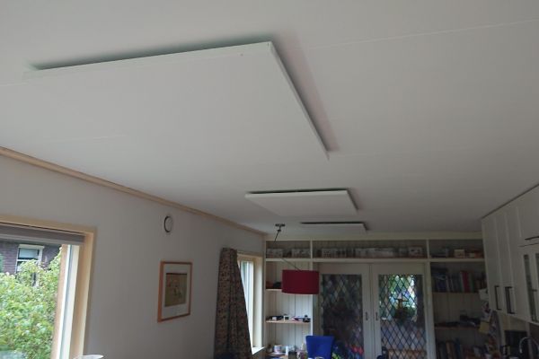 De infraroodverwarming geeft al snel na het inschakelen warmte. In het begin voel je vooral de warmte vanaf het paneel stralen. Als de verwarming iets langer aan staat, wordt het meer “totaalwarmte”. Het duurt een tijdje voordat vloer en meubels ook warm zijn. Het past heel goed bij ons om alleen te verwarmen waar het nodig is.