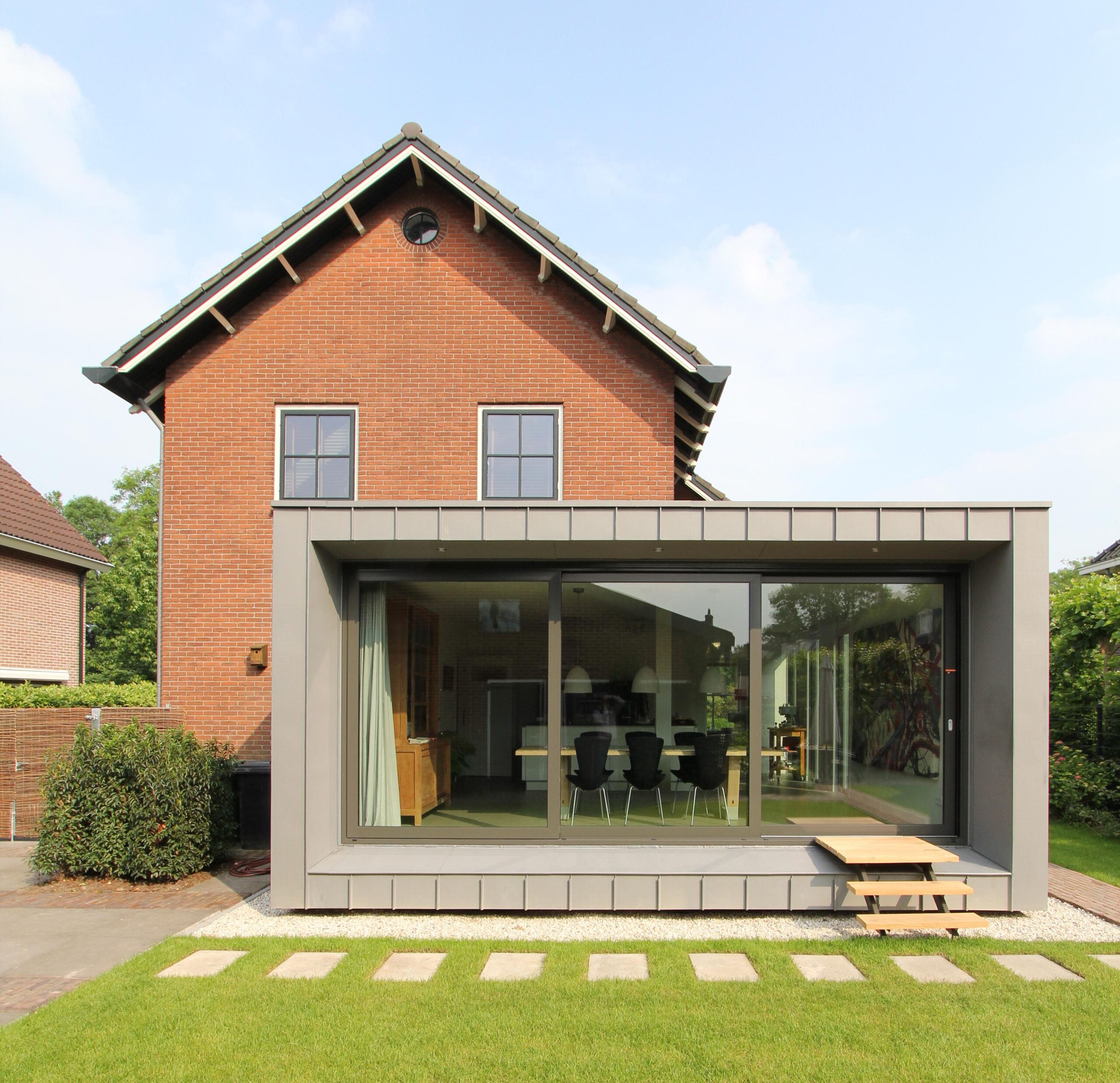 Verder is het huis uitgebreid met een ruime woonkeuken, waarbij de uitbouw optimaal geïsoleerd is d.m.v. houtskeletbouw met een Rc=7,0. Ook het bestaande huis is voorzien van nieuwe dakisolatie, spouwisolatie en HR++ glas met een U-waarde van 1,0.