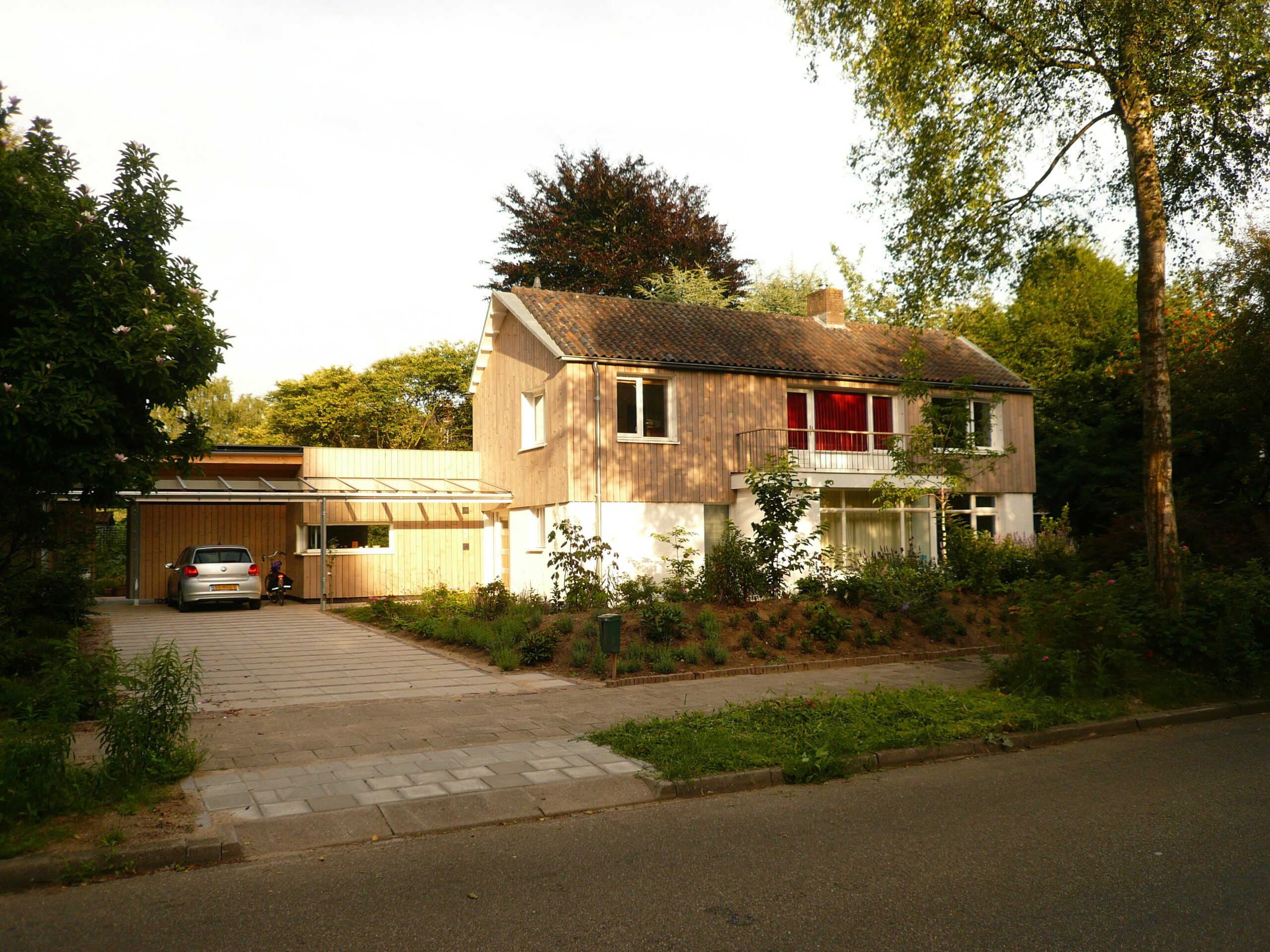 Het huis is gebouwd in 1954 als kleine vrijstaande Bouwfondswoning, begin jaren ’70  uitgebreid. In 2010, bij aankoop, energielabel G, enkel glas, alumiunium kozijnen, vloer noch muren of dak geisoleerd, asbest op het garagedak. Eerste verbouwing 2010 grotendeels HR++glas, zolder geisoleerd, tonzon onder de kamervloer, spouw deels met thermoparels gevuld. tweede verbouwing in 2014/15: garage gesloopt en woonkeuken aangebouwd (triple glas, vloer en dak passiefhuis-norm, laag temperatuur vloerverwarming). Tevens losse berging en carport, met hierop 30 zonnepanelen. Bestaande woning rondom ingepakt in 20 centimeter isolatie, nieuwe gevelbekleding met inlands cederhout en stucwerk. Herontwerp tuin, hemelwater afgekoppeld.