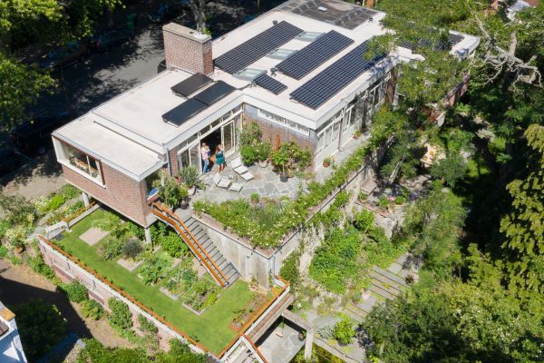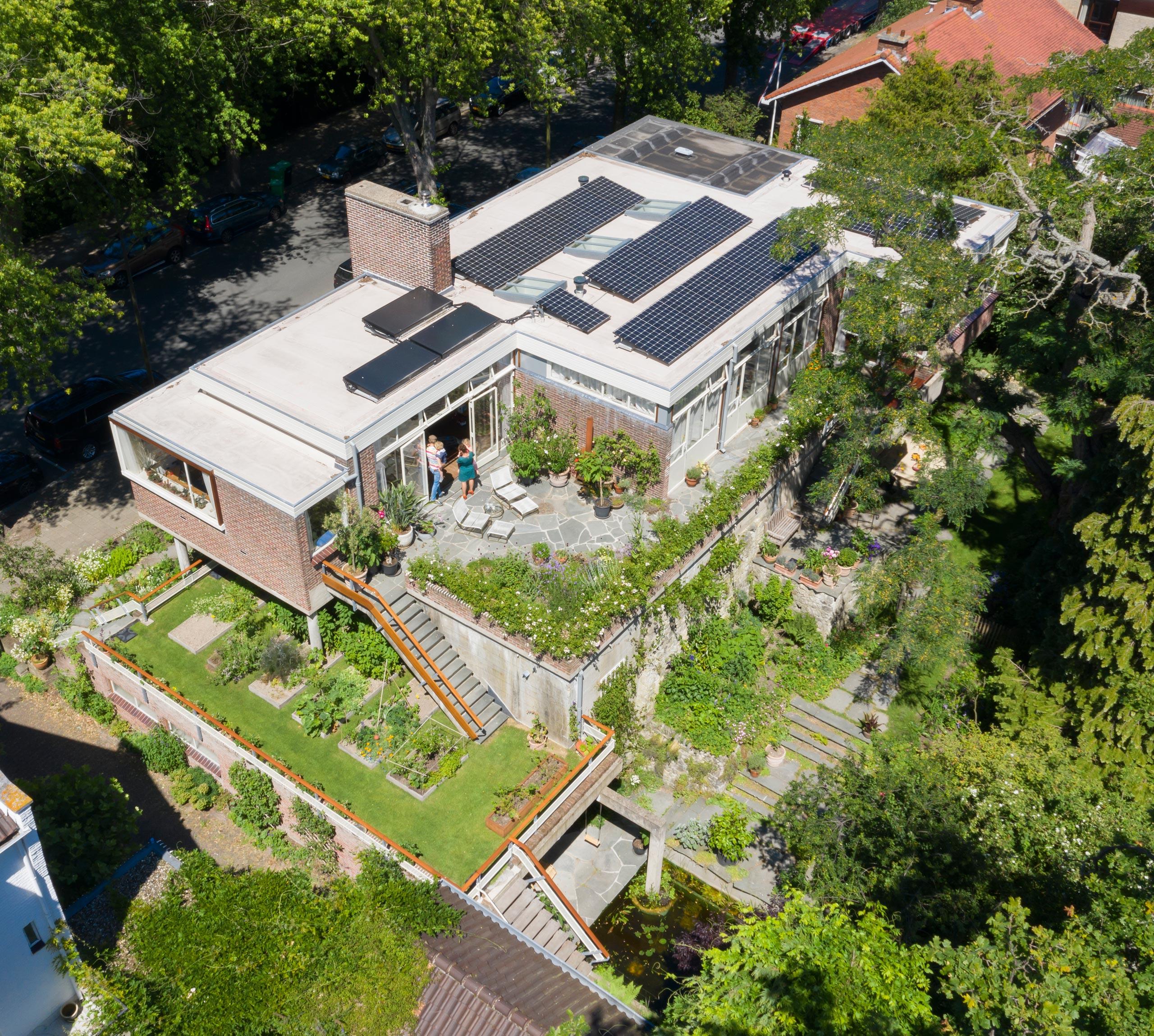 Het Woonhuis op de Bunker (1955) is een bijzonder rijksmonument. Woonhuis, tuin en het nog oorspronkelijke interieur zijn in 2007 opgenomen in de Top 100 van Nederlandse wederopbouwmonumenten. Met een recente restauratie (2017-2019) is de woning weer volledig in oude luister hersteld. Het gegeven dat alle installaties aan vernieuwing toe waren is aangegrepen om een nieuw klimaatneutraal installatieconcept uit te werken. De woning, die sinds de restauratie ‘van het gas af’ is, is zonder noemenswaardige aanpassingen aan de bestaande detaillering toch grondig geïsoleerd. Het platte dak is voorzien van een grote hoeveelheid PV-panelen en zonnecollectoren, die zodanig geplaatst zijn dat ze vanaf maaiveld niet zichtbaar zijn. Nieuwe leidingen en afvoeren zijn onzichtbaar weggewerkt in het historische interieur door op strategische plaatsen sparingen te boren door het metersdikke dak van de bunker.
