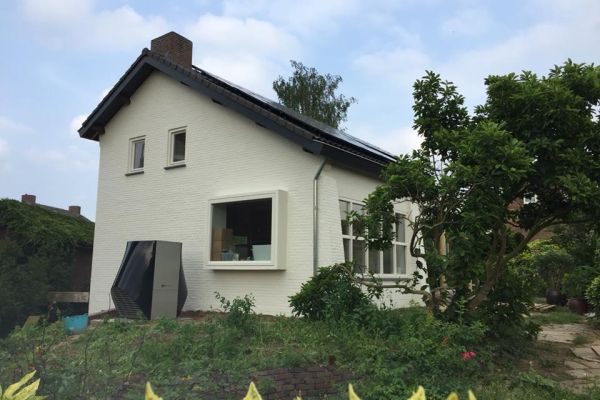 De woning is gebouwd in 1957 als woonhuis/tandartspraktijk. De 1e bewoner overleed in 2017 en wij hebben het huis gekocht en volledig gerenoveerd. Er zat oorspronkelijk heteluchtverwarming in dit huis, was niet geisoleerd, veel koudebruggen en heel veel achterstallig onderhoud. Wij hebben een nieuw geïsoleerd dak laten aanbrengen, nieuwe kozijnen met HR++ glas, gevelisolatie, lucht-warmtepomp, zonnepanelen, vloerverwarming en laag temperatuurradiatoren. Wij hebben een energiebehoefte laten berekenen door een gespecialiseerd ingenieursbureau. Na 1 vol jaar mogen wij vaststellen dat wij inmiddels gasloos zijn en 0 op de meter bereikt hebben. Met 35 zonnepanelen hebben we het jaar rond kunnen voorzien in de hele energiebehoefte.